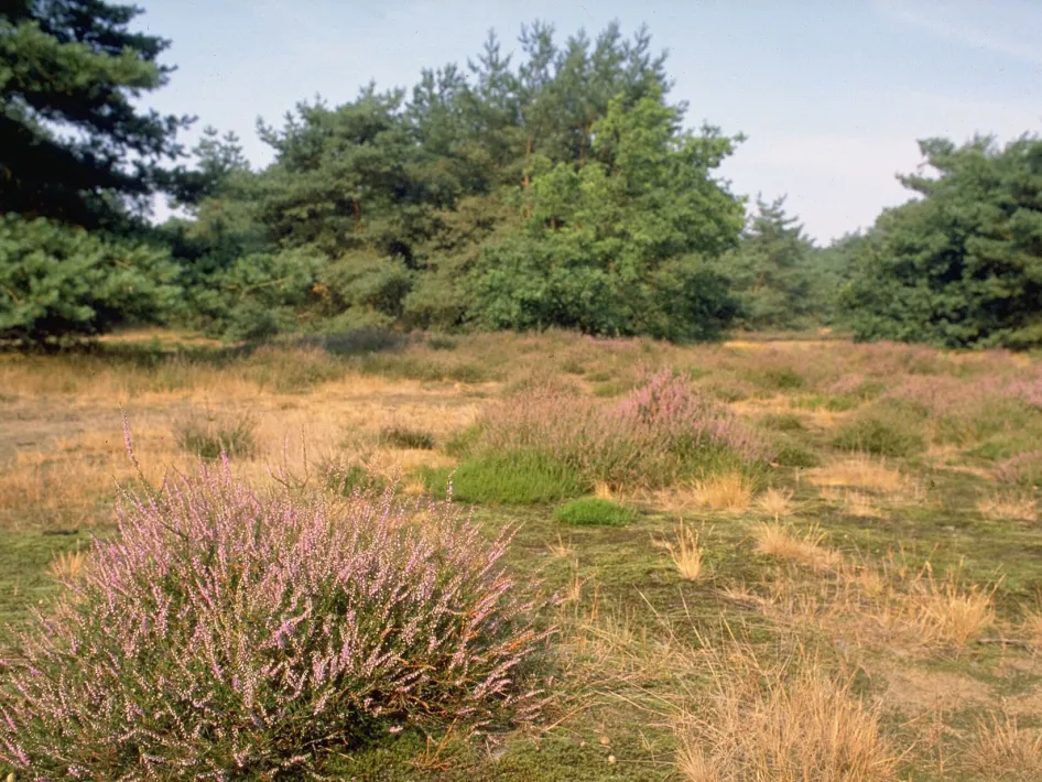 Dit aangeplante dennenbos wordt afgewisseld met stukken heide en stuifzand.