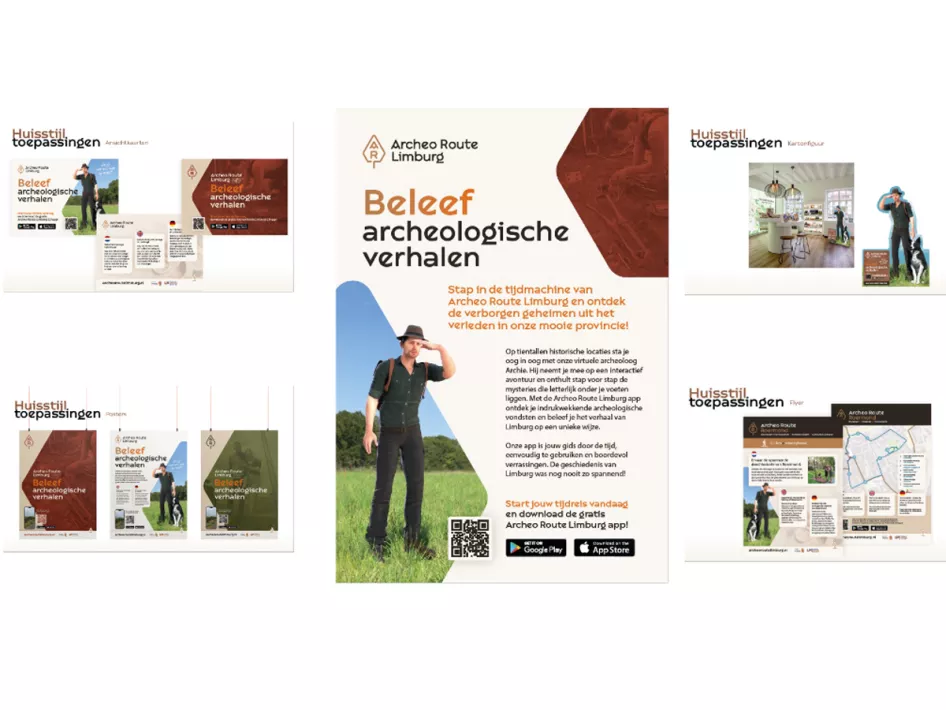Mocht je als gemeente eigen media items willen maken ter promotie van de Archeo Route Limburg in jouw gemeente, vraag dan gerust via info@archeoroutelimburg.nl om sjablonen met deze nieuwe branding, die je als onderlegger voor jouw marketing uiting kunt gebruiken.